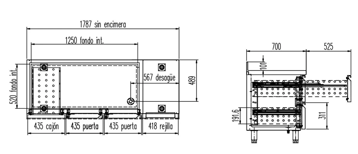 - Arbeitsplatte, Innenraum, Türen und Seitenteile aus hochwertigem Chrom-Nickel-Stahl